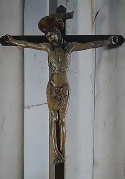 Positioned to the right of the entrance to the chancel, it is the work of an unknown master carver of the late 15th century. The workmanship of the wooden artifact denotes great technical mastery and capacity for sentimental rendering: the limbs of Jesus are firm and placid, and a strong symmetry prevails on the sculpture, clearly evident in the identical regularity of the two arms spread apart.