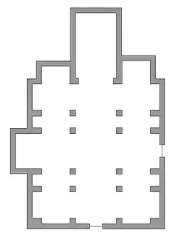 In 1957, major archaeological excavations were conducted under the church sacristy:[67] the entire wall of the northern flank of the Romanesque church was brought to light and with it an apse of the crypt demolished in 1601: the wall fragment, about one meter high, was still decorated by the fifteenth-century frescoes commissioned by Abbot Bernardo Marcello.[67] Lower down, however, an earlier decoration emerged, in votive panels with figures of saints.[68] An ancient Roman funerary stele, carved with four figures in a row, three men and a woman, surmounted by a triangular pediment, was also found in the foundations. The work was dismembered and transferred to the Santa Giulia Museum.[68] Another reused Roman stele was also found, consisting only of an inscription.[69] Both finds were dated to the first century.[68][69]