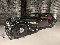 A suspected Saoutchik construction on a Cadillac V16 chassis around 1930 has not yet been verified,[9] but there is a Bentley 6 ½ liter from 1929 with a short chassis that an American customer had bodied by Saoutchik. The chosen structure was a three-position convertible in which the top could be opened fully or partially (only over the front seats), and there was also an integrated trunk. Saoutchik incorporated both French and British style elements and used nickel silver appliqués.[10]