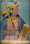 There were two known dynasties, led by the Hurin and Hanan moieties respectively.[7] The latter was in power at the time of Spanish conquest. The last effective Sapa Inca of Inca Empire was Atahualpa, who was executed by Francisco Pizarro and his conquistadors in 1533, but several successors later claimed the title.[8]