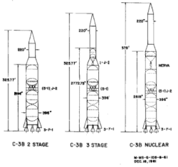 The Saturn C-3BN revision (1961) would use the NERVA for the third stage in this launch vehicle. The NERVA technology has been studied and proposed since mid-1950s for future space exploration.