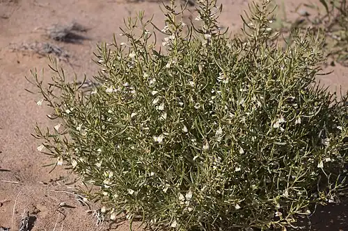It is found on saline soils in the arid parts of the south of Western Australia, the south of the Northern Territory, South Australia, western Queensland and north-western New South Wales.[4]