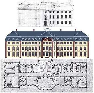 Schönbornslust reconstruction including ground plan and a preliminary design by Balthasar Neumann