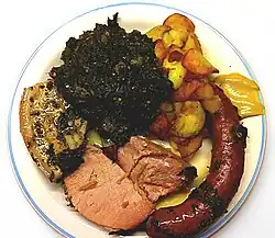 • Grünkohl with Kochwurst and Schweinebacke (a cured cut from a pig's head), sometimes with Pinkel