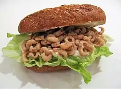 Nordseekrabben served on a sandwich roll.