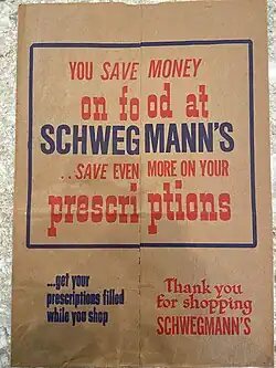 Schwegmann's used their paper grocery bags to provide advertorials, which were usually either human interest stories or advocacy statements.[1]: 149 Often the advertorials were endorsements for political candidates.[6]