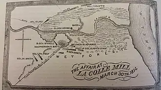 The Battle of Lacolle Mills was fought on 30 March 1814 during the War of 1812. The small garrison of a British outpost position, aided by Canadian reinforcements, fought off a large American attack.