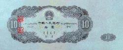 The second series of Renminbi banknotes was introduced on March 1, 1955 (but dated 1953). Together with the introduction of the second series, the decimal point was moved 4 places to the left. As a result, one first series ¥10,000 note is equivalent to one second series ¥1 note.