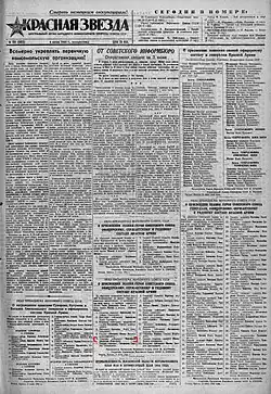 The 4 June 1944 edition of the military newspaper Krasnaya Zvezda, announcing Romanovtsev's award of the title of Hero of the Soviet Union