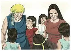 Rav and Samuel differed about the identity of the midwives Shiphrah and Puah, to whom Pharaoh spoke in Exodus 1:15. One said that they were mother and daughter, and the other said that they were mother-in-law and daughter-in-law. According to the one who said that they were mother and daughter, they were Jochebed and Miriam; and according to the one who said that they were mother-in-law and daughter-in-law, they were Jochebed and Elisheba, who married Aaron. A baraita taught in accordance with the one who said that they were mother and daughter, teaching that Jochebed was called Shiphrah because she straightened (meshapperet) the limbs of the newborns. Another explanation was that she was called Shiphrah because the Israelites were fruitful (sheparu) and multiplied in her days. Miriam was called Puah because she cried out (po'ah) to the unborn children to bring them out. Another explanation was that she was called Puah because she cried out (po'ah) with the Divine Spirit to say: "My mother will bear a son who will save Israel."[110]