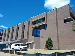 The Hudson River Museum in Yonkers, New York, designed chiefly by Willis N. Mills and Willis N. Mills Jr. of Sherwood, Mills & Smith and completed in 1969.
