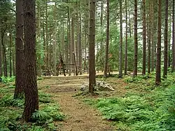 Sherwood Pines Forest Park is a forest park located near the village of Kings Clipstone, Nottinghamshire, England.[1] Originally called Clipstone Heath, it was acquired by Forestry England in 1925 and planted with trees in response to a wood shortage after World War I. The park offers activities such as walking, bushcraft, mountain biking and there is a visitor centre. It is the largest park in the East Midlands of England. The forest is also home to the average point between the geographical centres and population centres of Great Britain.