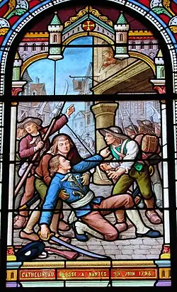 Jacques Cathelineau, mortally wounded at Nantes, as depicted in a stained glass window at the church of Beaupréau-en-Mauges