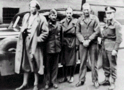 Siegfried Fehmer (second from right) in May 1945 after capture by Sgt John Maclean (rightmost). With them are two Police officers, and Fehmer's assistant (far left), disguised as a woman.