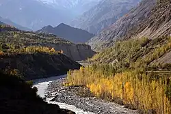 Sikandarabad (Urdu: سکندر آباد) is a headquarter of the Nagar District of Gilgit–Baltistan in Pakistan. It is the headquarters of Nagar 2 tehsil. It is for first place to enter after Gilgit district. Sikandarabad is located on the Karakoram Highway. The first view point of Rakaposhi is located in Sikanderabad which is across the Silk route of Budalas Valley to Khizerabad. Sikandarabad is a mountainous area in the Karakoram range". It is near the base camp of Rakaposhi mountain. Opposite Sikandarabad there are the great Himalaya range mountains. It contains many fruit trees and also vegetables, for example, cherry, apples, peach, apricot, potatoes, and maize. It also has dry fruits trees, for example, walnut, almond, and dry apricot. Sikandarabad Nagar is home to a population of approximately 5000 residents.