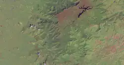 Silent Valley is rectangular, twelve kilometres from north to south and seven from east to west. Located between 11°03' to 11°13' N (latitude) and 76°21' to 76°35' E (longitude) it is separated from the eastern and northern high altitude plateaus of the (Nilgiris Mountains) by high continuous ridges including Sispara Peak (2,206 m) at the north end of the park. The park gradually slopes southward down to the Palakkad plains and to the west it is bounded by irregular ridges. The altitude varies from 658 m to 2328 m at Anginda Peak, but most of the park lies within the altitude range of 880 m to 1200 m. Soils are blackish and slightly acidic in evergreen forests where there is good accumulation of organic matter. The underlying rock in the area is granite with schists and gneiss, which give rise to the loamy laterite soils on slopes.[20]