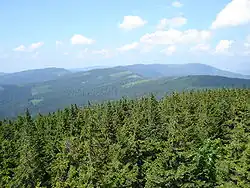 Silesian Beskids (Polish: ⓘ, Czech: ⓘ, German: Schlesische Beskiden) is one of the Beskids mountain ranges in the Outer Western Carpathians in southern Silesian Voivodeship, Poland and the eastern Moravian-Silesian Region, Czech Republic.