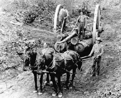 Horses, faster and more maneuverable, more nervous although sometimes more fragile than the placid and resistant oxen, were very soon appreciated for forest skidding. A powerful, well-trained horse could sometimes accomplish in half a day the task of a pair of oxen harnessed together in a day.