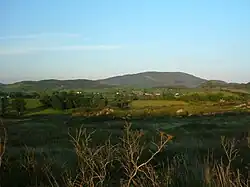 Slieve Gullion (from Irish Sliabh gCuillinn, meaning 'hill of the steep slope'[2] or Sliabh Cuilinn, "Culann's mountain")[3] is a mountain in the south of County Armagh, Northern Ireland. The mountain is the heart of the Ring of Gullion and is the highest point in the county, with an elevation of 573 metres (1,880 ft).[4] At the summit is a small lake and two ancient burial cairns, one of which is the highest surviving passage grave in Ireland. Slieve Gullion appears in Irish mythology, where it is associated with the Cailleach and the heroes Fionn mac Cumhaill and Cú Chulainn. It dominates the countryside around it, offering views as far away as County Antrim, Dublin Bay and County Wicklow on a clear day.[5] Slieve Gullion Forest Park is on its eastern slope.