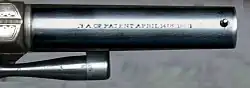 The Slocum, a unique design, was patented on January 27. 1863 (Patent No. 37 551). Later, on April 14, 1863, a patent covering a slight modification of the cartridge ejector system (Patent No. 38 204), was granted to Frank P. Slocum.[2] This circumvented the Rollin White “bored through cylinder” patent which belonged to Smith & Wesson.