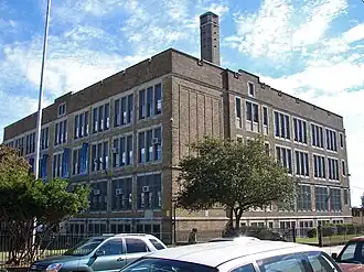 The building was designed by Irwin T. Catharine and was built between 1927 and 1928. It is a three-story, nine-bay, yellow brick building that sits on a raised basement. Created in the Late Gothic Revival style, it features a projecting stone entryway with Tudor-arched opening, stone openings, and a crenellated parapet.[2]