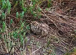 The female usually lays up to three, pale brown, dark-spotted eggs in a hollow nest under the edge of a grass tussock. The diet consists mainly of seeds, flowers, leaves, and other vegetable matter.