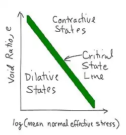 After a soil reaches the critical state, it is no longer contracting or dilating and the shear stress on the failure plane is determined by the effective normal stress on the failure plane and critical state friction angle :