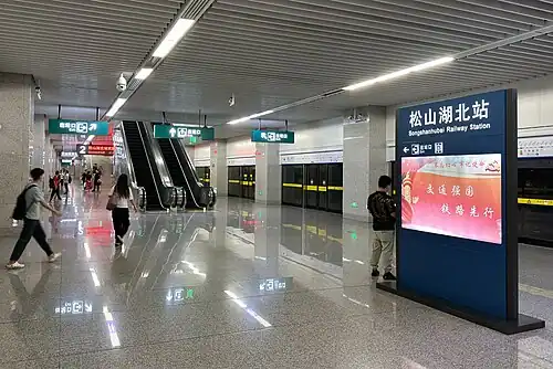 Songshanhu North railway station (Chinese: 松山湖北站; pinyin: Sōngshānhú Běi Zhàn; Jyutping: Cung4saan1wu4 Bak1 Zaam6) is a railway station in Liaobu, Dongguan, Guangdong, China. It opened on 28 December 2017.[1]