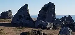 Some of the oldest natural history of this area related to mammals are a blueschist rock formation about one mile (1.6 km) south of the Russian River. There is found a sea stack formation with prominent rubbing marks about two to four meters in elevation, a height too high to have been caused by modern bovids. Mammoths are believed to have roamed here as recently as 40,000 years ago, and they are thought to have created these severe rubbing marks.[3] Mammoth fossil remains have been found at Bodega Head at the south end of Sonoma Coast State Park.