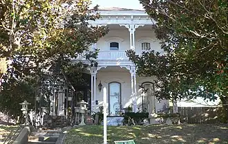 Architectural styles in the district include Vicksburg architectural types typically found, including the 2-bay shotgun, the 3, 4 and 5-bay galleried cottages and the 3-bay galleried townhouse.[3] Also represented are Queen Anne, Greek Revival, Italianate, Shingle, Romanesque Revival, Colonial Revival, Neoclassical, Tudor Gothic, Tudor Revival, Mission Revival, Mediterranean, Spanish Revival, Italian Renaissance, Prairie, American Foursquare, Craftsman Bungalow, and Ranch styles.[3]