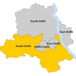 South Delhi Municipal Corporation (SDMC) was one of the municipal corporations in Delhi, India, that was established after the former Municipal Corporation of Delhi was trifurcated in 2012. It governed over a jurisdiction spanning 656.91 km2 (253.63 sq mi), which was further divided into four zones: Central, South, West, and Najafgarh. Comprising 104 wards, the EDMC catered to a population of almost 5,600,000 (56 lakhs) in Delhi.[1][2]