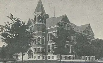 It replaced "The American House" that served as a boarding house for out-of-town visitors from 1854.[2] The South Side School was designed by architect John W. Ross and was built by Volk Construction Co.[1] It was demolished, controversially, in 1979.[3]