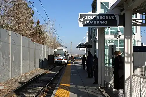 Southmoor station is a light rail station in Denver, Colorado, United States. It is served by the E and H Lines, operated by the Regional Transportation District (RTD), and was opened on November 17, 2006.[4][5] It is the southernmost station before the Interstate 225 branch splits from the Southeast Corridor and serves as a transfer station for each line.[6]