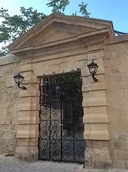 The palace originally was surrounded by large extensive gardens open for the entertainment of the public, but little remains of them.[67] Part of the demolished gardens consisted of a wine yard.[68][69] There are now two gardens, one at the front and one at the back, with only the front garden open to the public. The front garden was embellished by the Tumas Group between 2006 and 2007. During this renovation, the garden's Baroque character was retained, but a modern twist was added.[70][71] It is prohibited to consume alcohol at any time at the garden.[72] The private back garden is not accessible to the public and is enclosed by a high wall.[73] They are named, and generally known, as the Spinola Gardens.[74]
