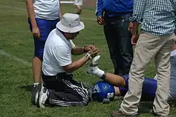 Another beneficial review for preventing player sports injuries is preseason screenings. A study found that the highest injury rate during practices across fifteen Division I, II, and III NCAA sports was in the preseason compared to in-season or postseason.[33] To prepare an athlete for the wide range of activities needed to partake in their sport pre-participation examinations are regularly completed on hundreds of thousands of athletes each year. The physical exam must be done properly to limit the risks of injury and also to diagnose early onsets of a possible injury. Preseason screenings consist of testing the mobility of joints (ankles, wrists, hips, etc.), testing the stability of joints (knees, neck, etc.), testing the strength and power of muscles, and also testing breathing patterns. The objective of a preseason screening is to clear the athlete for participation and verify that there is no sign of injury or illness, which would represent a potential medical risk to the athlete (and a risk of liability to the sports organization).[30] Besides the physical examination and the fluidity of the movements of joints the preseason screenings often take into account a nutrition aspect as well. It is important to maintain normal iron levels, blood pressure levels, fluid balance, adequate total energy intake, and normal glycogen levels. Nutrition can aid in injury prevention and rehabilitation if one obtains the body's daily intake needs. Obtaining sufficient amounts of calories, carbohydrates, fluids, protein, and vitamins and minerals is important for the overall health of the athlete and limits the risk of possible injuries.[34] Iron deficiency, for example, is found in both male and female athletes; however 60 percent of female college athletes are affected by iron deficiency.[34] There are many factors that can contribute to the loss of iron, like menstruation, gastrointestinal bleeding, inadequate iron intake from the diet, general fatigue, and weakness, among others. The consequences of iron deficiency, if not solved, can be impaired athletic performance and a decline in immune and cognitive function.[35]