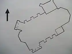 Groundfloor plan showing the church oriented towards the liturgical East (altar at the East apse)