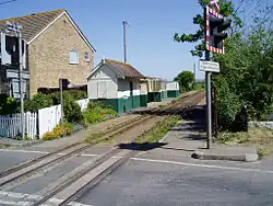 Although no longer a block post for train control purposes, it was able to be used as such until 2000. The station had a single-aspect signal installation in the 'starter signal' position on the 'down' platform. The one displayable aspect was 'danger' (red). This was unusual in a non-block station. This signal had the outward appearance of being two-aspect, but this was an illusion, as one apparent signal aspect was in fact the repeater flashing light to indicate to train drivers that the adjacent level crossing (with Jefferstone Lane) signals had operated correctly to stop road traffic.
