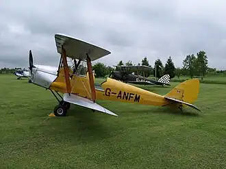 An aircraft is said to have positive stagger, or simply stagger, when the upper wing is positioned forward of the lower (bottom) wing,[2] Examples include the de Havilland Tiger Moth or Stearman. Conversely, an aeroplane is said to have negative stagger in unusual cases where the upper wing is positioned behind the lower wing, as in the Sopwith Dolphin or Beech Model 17 Staggerwing.[2] An aircraft with the wings positioned directly above each other is said to have unstaggered wings, as in the Sopwith Cuckoo or Vickers Vildebeest.
