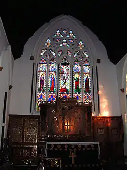 Altar and stained glass window, Holy Trinity, Stapleton
