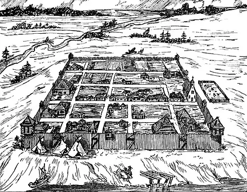 One of the first structures erected was a chapel, traditionally believed to have been constructed on July 26, 1701, the feast day of Saint Anne. St. Anne held special significance for them as they had adopted her as their patroness. In her honor, the outpost's inaugural street and primary thoroughfare was named "Ste. Anne Street" until 1805. Successive churches maintained a prominent presence on this site, situated just west of present-day Jefferson and Griswold Streets.