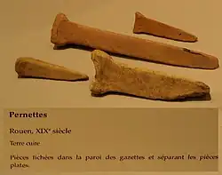 Pernettes stuck in the walls of the saggars to separate flat pieces