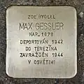 Gessler, MaxMax Gessler was born on 12 February 1878. He ran a textile business in Hranice and was married to Terezie (see below).[3] The couple had two daughters: Ilsa (born 1918, see below) and Lída (born 1922). Max Gessler, his wife and their daughters were deported to Theresienstadt concentration camp from Olomouc on 26 June 1942 by transport AAf. Gesslers transport number was 459. On 18 May 1944, both were deported by transport Eb to Auschwitz concentration camp. Max Gesslers transport number was 2063. There Max Gessler and his wife were murdered by the Nazi regime.[4]