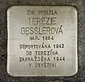 Gesslerová, TerezieTerezie Gesslerová also called Růžena or Tereza, was born on 11 July 1884. She married Max Gessler (see above), a textile merchant. The couple had two daughters: Ilse (see below) and Lída. Terezie Gesslerová, her husband and their daughters were deported to Theresienstadt concentration camp from Olomouc on 26 June 1942 by transport AAf. Gesslerovás transport numbers was 460. On 18 May 1944, both were deported by transport Eb to Auschwitz concentration camp. Terezie Gesslerovás transport number was 2064. There Terezie Gesslerová and her husband were murdered by the Nazi regime.[7]