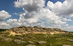 Kamyana Mohyla (Ukrainian: Кам'яна Могила, lit.'stone grave'; Russian: Каменная Могила, romanizedKamiennaya Mogila) is an archaeological site in the Molochna River (lit.'milky river') valley, about a mile from the village of Terpinnia, Zaporizhzhia Oblast, Ukraine. Petroglyphs of Kamyana Mohyla are dated from Upper Paleolithic (Kukrek culture) to Medieval, with Stone Age depictions subjected to most archaeological interest. The site is listed on the Tentative List of World Heritage Sites in Ukraine.