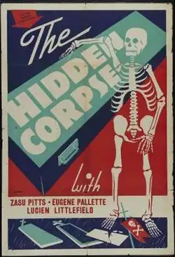 Strangers of the Evening (reissued as The Hidden Corpse[3]) is a 1932 American pre-Code mystery film produced by Samuel Bischoff for Tiffany Pictures, directed by H. Bruce Humberstone, and starring ZaSu Pitts, Lucien Littlefield and Eugene Pallette.[4] Based on Tiffany Thayer's novel The Illustrious Corpse,[5] the screenplay was adapted by Stuart Anthony and Warren Duff.