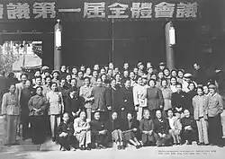 From December 1948 to March 1950, Sun was an alternate member of the supervisory of the Jiusan Society.[14] She was a delegate at the 1st Chinese People's Political Consultative Conference in 1949.[3][17] Then, from 1949 to 1954, Sun was a counsellor of the State Council.[b][3] During this period, Sun observed the Land Reform Movement along with other counsellors.[18] Around this time, when Fan Xiheng was arrested, Sun offered assistance to his family.[19]