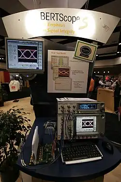 BERT instruments are often found near oscilloscopes because they complement each other. The BERT provides the bottom-line capability of determining if digital bits are being communicated effectively, but if they are not, the oscilloscope provides the ability to see the underlying analog waveform used to communicate the digital bits. It is common for underlying analog problems, such as timing jitter or amplitude noise or slow rise-time, to translate into digital bit errors. Beginning in a digital television product called the DVA184-C, and then following with the high-definition video product HDVA-292, and every BERT product afterwards, SyntheSys Research engineers integrated the ability to display the analog eye-diagram of the signal being evaluated.