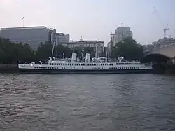 5. ^ "BBC London News: Victoria Embankment has taken a step back into its past with the towing away of the Queen Mary pub boat". BBC News. 8 November 2009. Retrieved 9 November 2009.