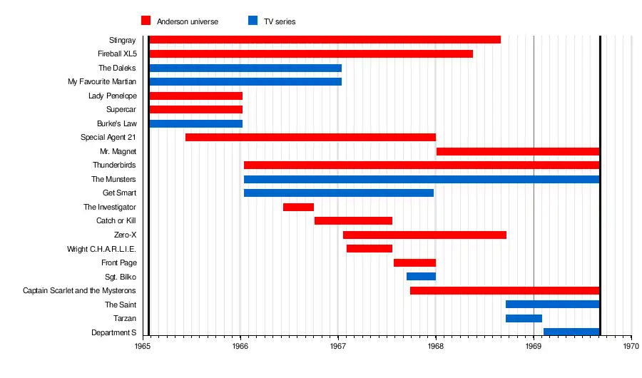Stingray Anderson universe Alan Fennell & Ron Embleton Dennis Hooper, Gerry Embleton, Michael Strand 1 (23 January 1965) 189 (30 August 1968)