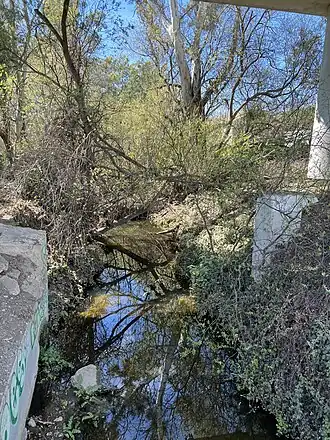 ![]() Tar Creek looking west from Union Pacific Railroad undercrossing beneath U.S. Highway 101, March 2022 | |